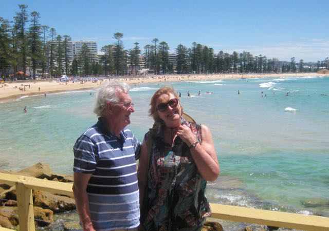 IMG_1383The next day was another lovely Sydney sunny day – not too hot. Martin, Fiona and I took the rivercat ferry from Meadowbank to Circular Quay and then hopped on the Manly ferry for a trip to the famous beach. The journey on the ferry was splendid with the sun glinting on the pristine harbour. The ferry was full of tourists.