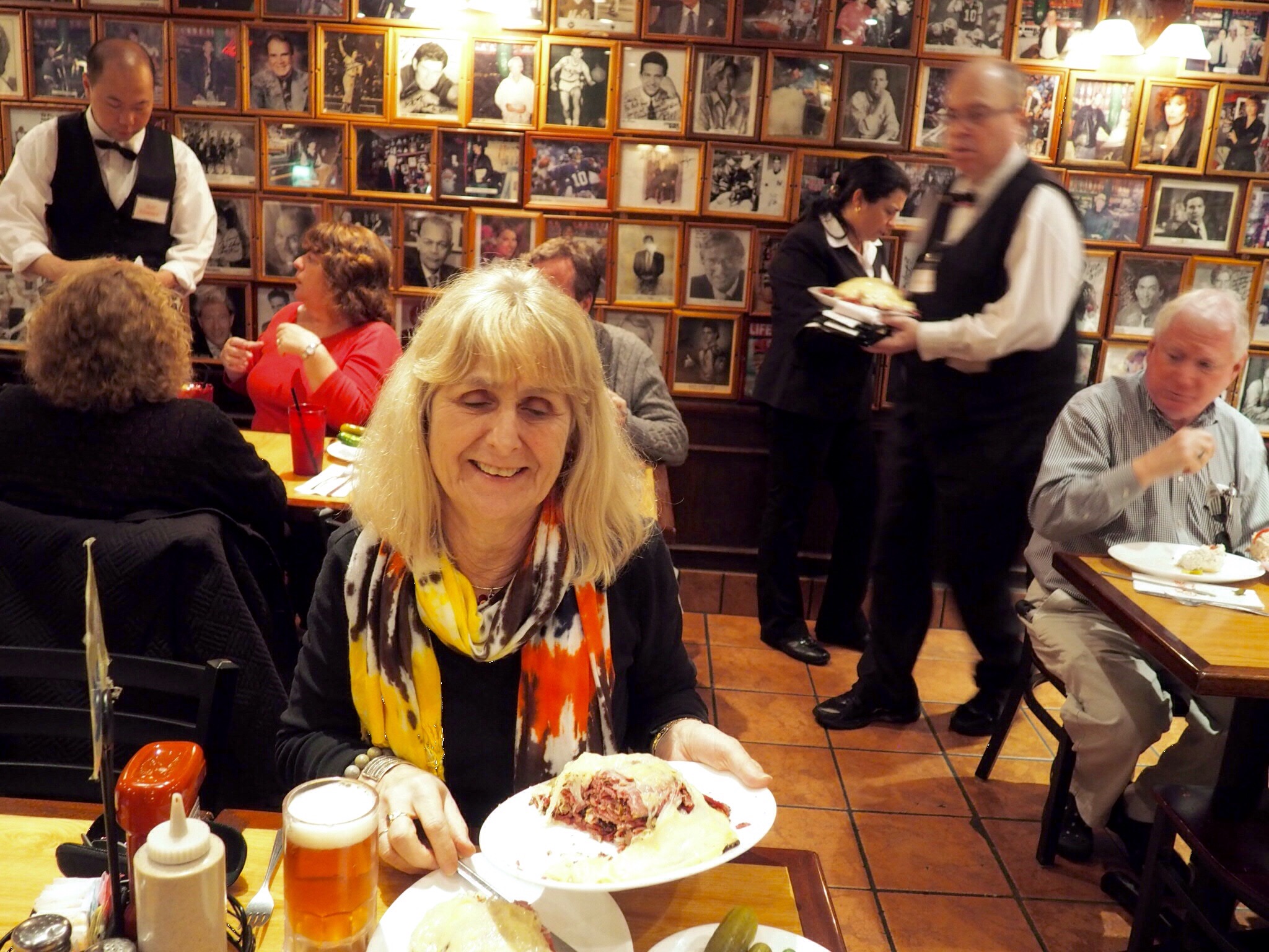 We head off for a late lunch at the famous Carnegie Deli. We go for the famous Reuben sandwich to share ($29) and a couple of beers. The sandwich is a huge pile of hot pastrami on bread covered with sauerkraut and melted cheese. The place is packed and we chat to the people next to us – two New Yorkers and a dad and daughter from Arizona.