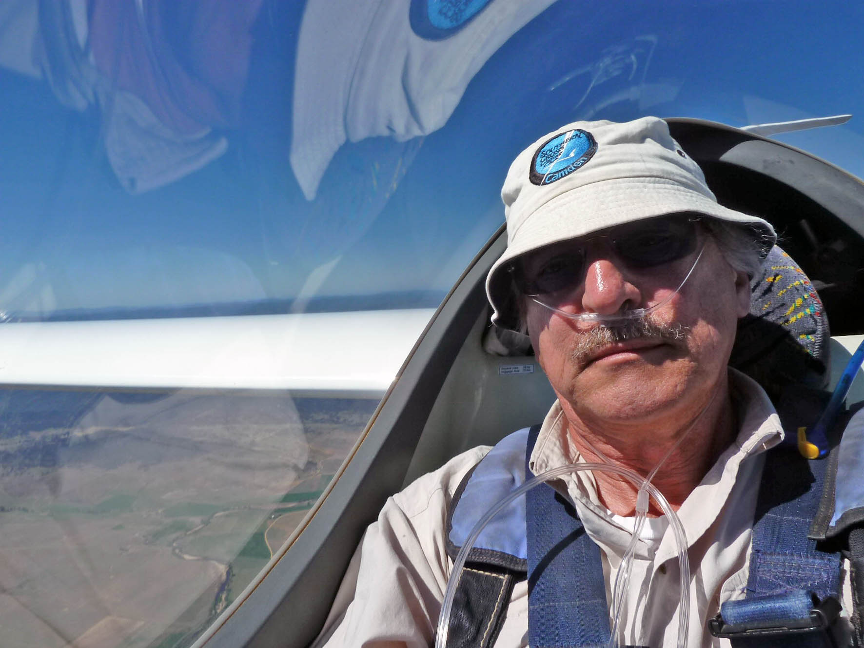 I had a cannula in my nose and a special little electronic box giving me the correct flow from a bottle of aviation breathing oxygen.