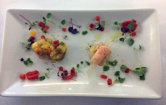The food was excellent. Here’s the Seared Scallops with Mango Capsicum Salsa, Pickled Fennel and Ginger. We also had Marinated Grilled Quail