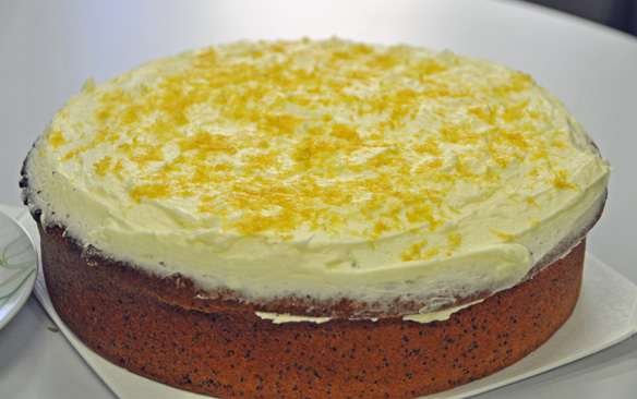 Last week was my turn to bake at the office. I baked my first cake (in 62 years) last year and have made a couple more since. I went back to a previously tried recipe, Maggie Beer’s lemon poppyseed cake. It takes quite a while to make these things, zesting the lemons and beating the butter, sugar, flour etc. I baked Wednesday evening and iced Thursday evening. I diverted (or deviated) from the recipe to make soft icing with butter and milk added. I finished with zest scattered on top. It was a great triumph. Unfortunately my nose was still affected by my cold and I couldn’t taste it very well! I was told by my colleagues it was delicious and very lemony.