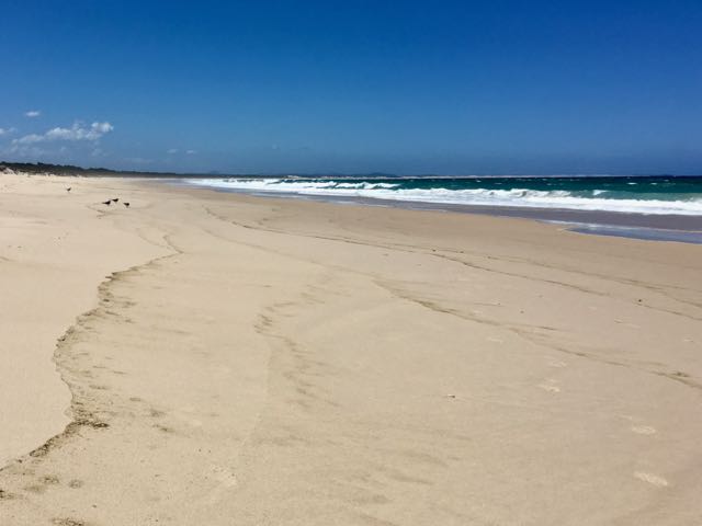 Dolphins have gone past just a couple of metres from shore and we saw a pair of stingrays wandering along in the shallows. There was a big goanna dashing under the car at one place. No koalas yet!