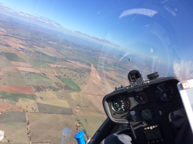 A lovely sunny 28-degree day today in Cootamundra, but very windy – windy enough to blow your hat off! It is difficult to fly cross-country in strong winds when you intend to return to your takeoff point. You drift down wind very quickly when circling in thermals and it is difficult to track back into a strong headwind.