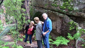 There’s a viewing platform on a bluff with fantastic vistas across the valley of the Kangaroo River several hundred feet below and to a golf course on the far side. There is also a spectacular outdoor “cathedral” with huge moss-covered rocks towering at least 15 metres either side of a central space. Unfortunately it pours with rain. It was a rainfall record I think – 230mm in one day in Kangaroo Valley.