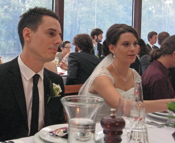 Having a lovely time in Kangaroo Valley south of Sydney at a bush retreat for the wedding of Amanda and Tris Burke. Bob and Julie Lymn travel with us. Great privilege to be invited and great fun. We stay in cabins among the trees around a lake. We see kangaroos in a paddock on the way there and a couple of wombats ambling around in a cute, wombatty way.